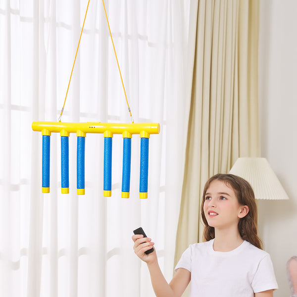 The upgrade here is the remote control with 3 adjustable speed settings. Speed 1 is perfect for kids or beginners building basic hand-eye coordination—drops are predictable enough to catch successfully while still challenging. Speed 2 is where most adults start getting humbled—reactions need to be faster. focus needs to sharpen. Speed 3 is genuinely difficult and makes for great competitive play when everyone's warmed up. The remote control means no reaching up to adjust settings mid-game. keeping the flow going during tournaments or timed challenges. The randomized drop pattern keeps it unpredictable—you can't memorize sequences. you have to actually react.